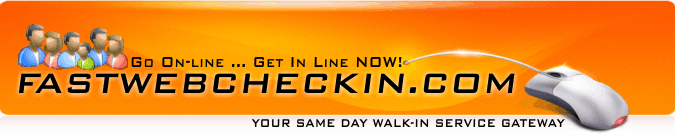 How Does It Work? Your “FAST WEB CHECK-IN” places you into a waiting room or line up. The system will provide you with a time to attend for service. This is an estimation based on actual current projected wait times. Attend the service providers location and present your “FAST WEB CHECK-IN” number. Same Day Walk-in Service Check-in available for: